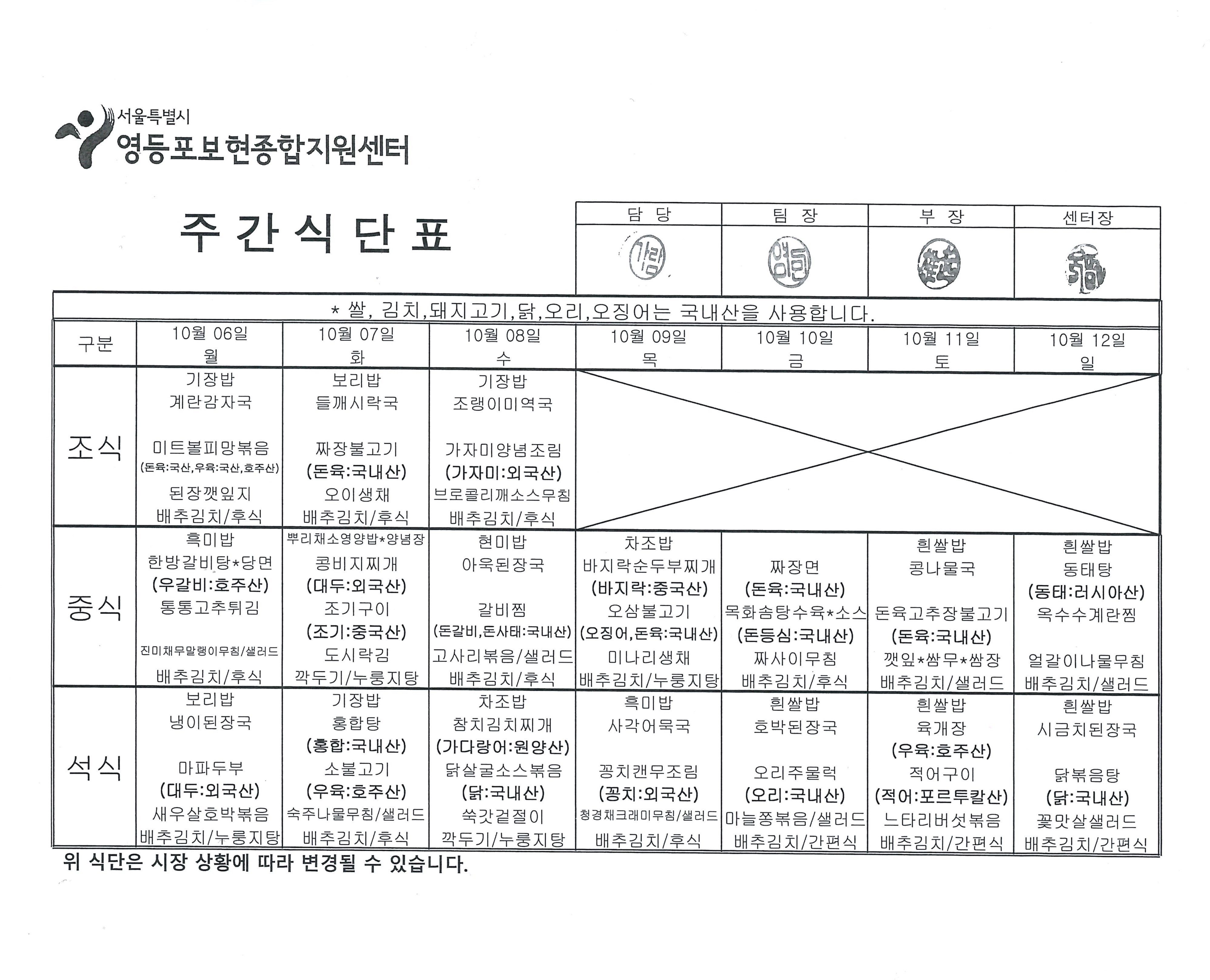 10월 2주차 식단표(6~12일) / 명절특식 페이지 정보 작성자 관리자 작성일25-10-02 19:15 조회174회 댓글0건 본문 댓글목록 등록된 댓글이 없습니다. 이전글 다음글 목록