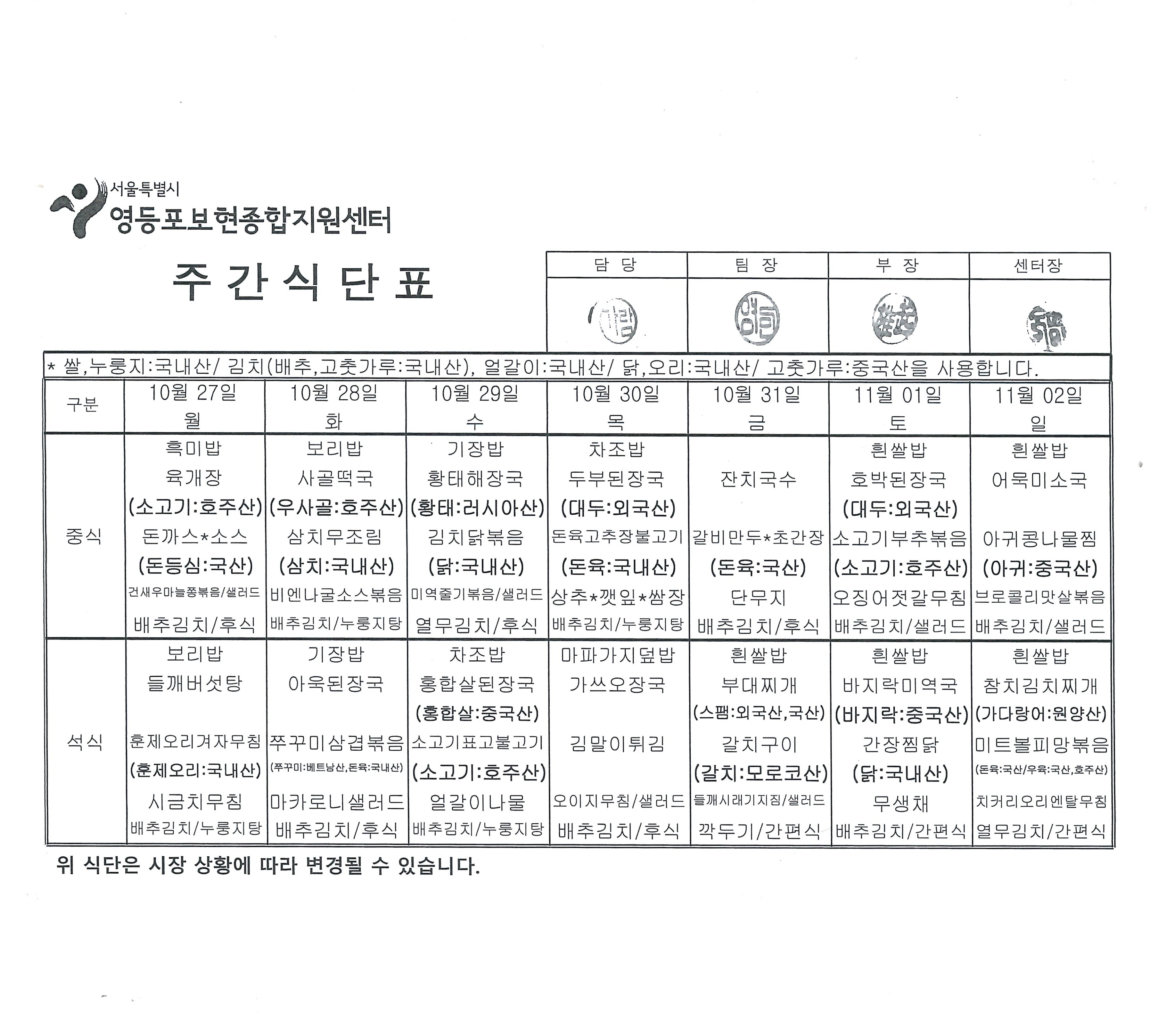 10월 4주차 식단표(27~11/2) + 11월 1주차 페이지 정보 작성자 관리자 작성일25-10-23 17:53 조회108회 댓글0건 본문 댓글목록 등록된 댓글이 없습니다. 다음글 목록
